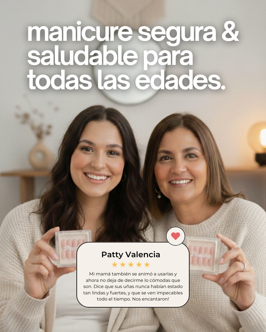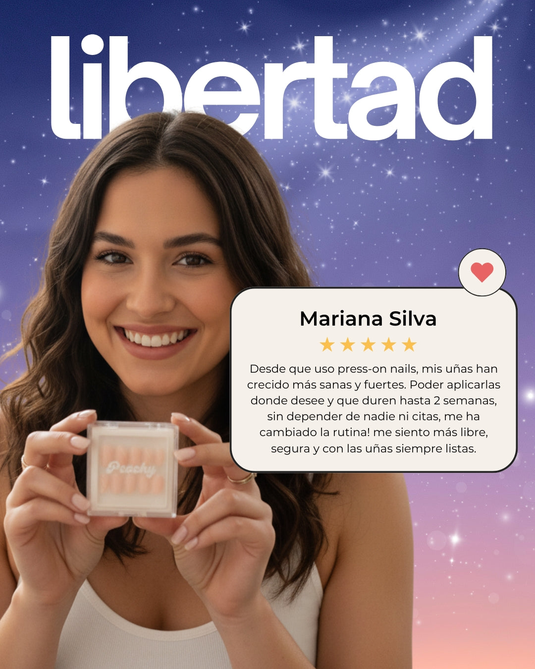 Mantienen su manicure con press on nails después de probar Peachy, incluye todo para aplicar sin necesidad de citas ni esperas.