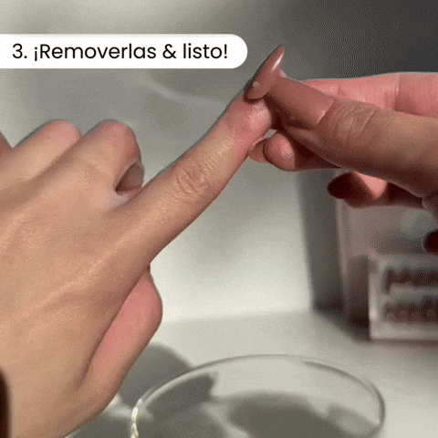 Sumerge tus uñas de 10 a 15 minutos. El calor y el aceite suavizan el adhesivo sin agredir tu uña natural.