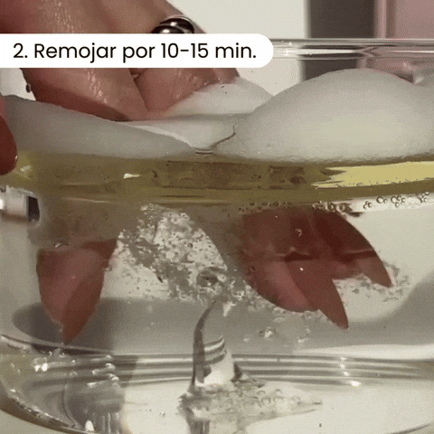 Si es necesario, haz ligera presión desde los bordes. Retira suavemente sin forzar: si aún están firmes, remoja unos minutos más.
