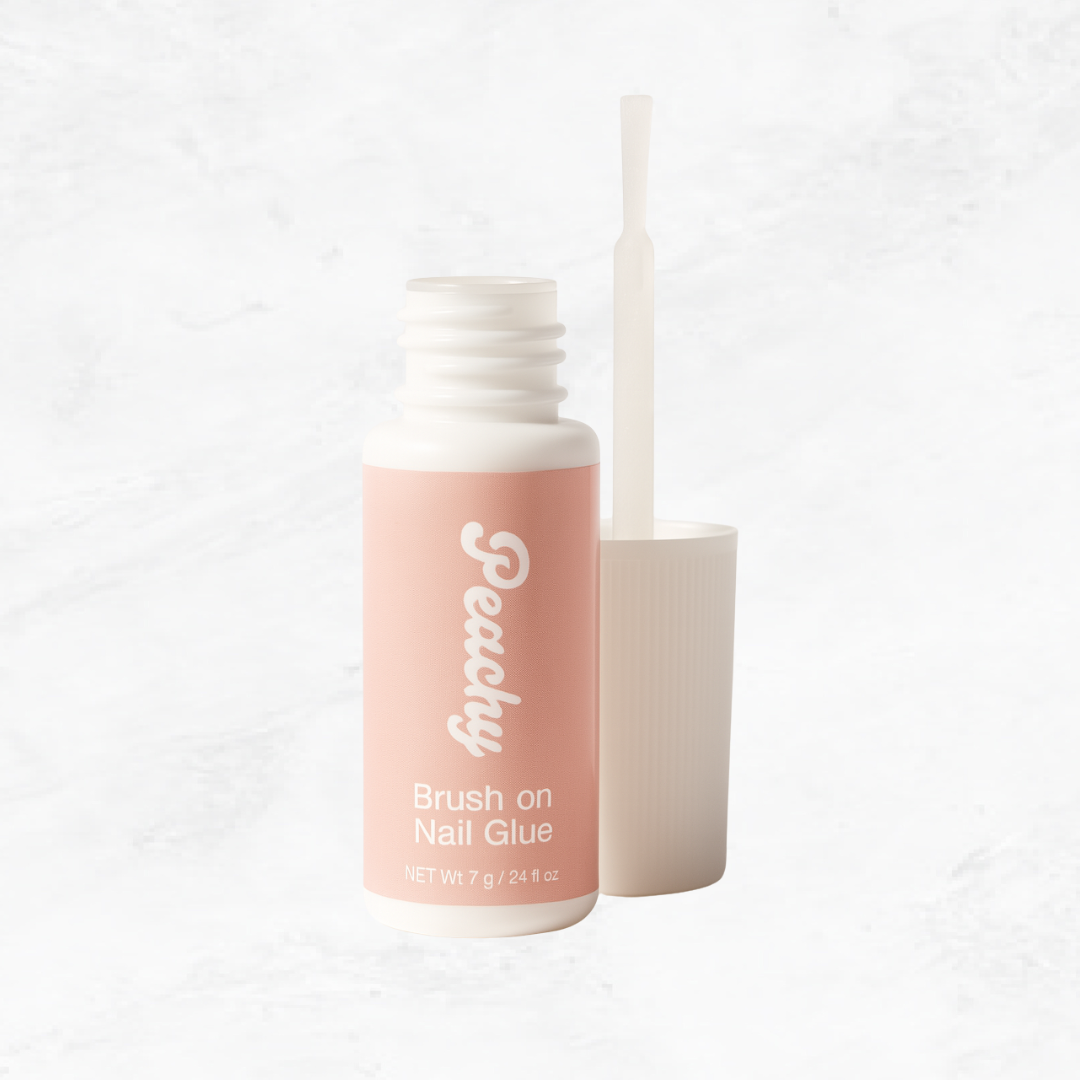 Aplica el pegamento Peachy después de elegir el tamaño ideal para tu uña natural. No te preocupes por la talla: cada set incluye 28 uñas con todas las medidas necesarias.