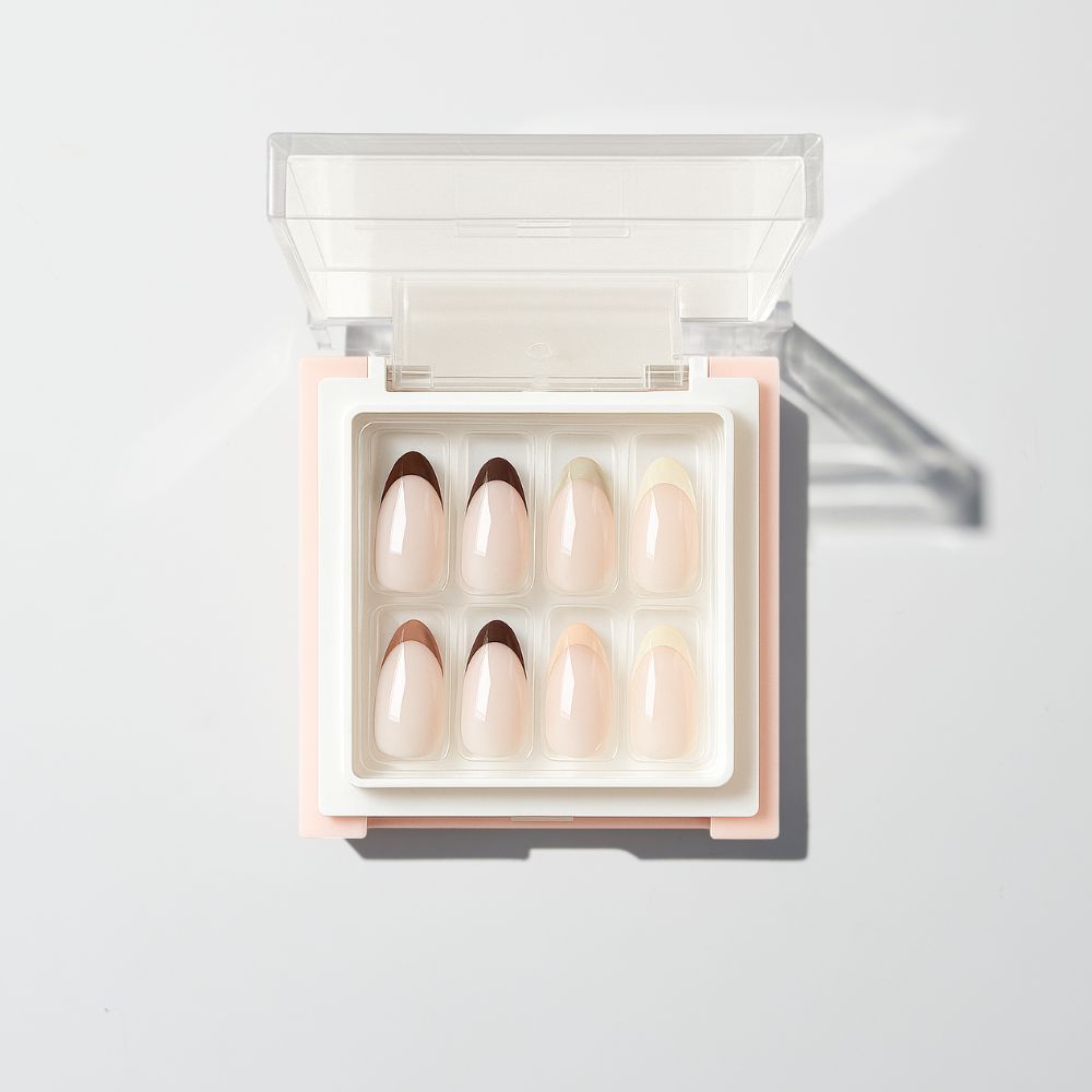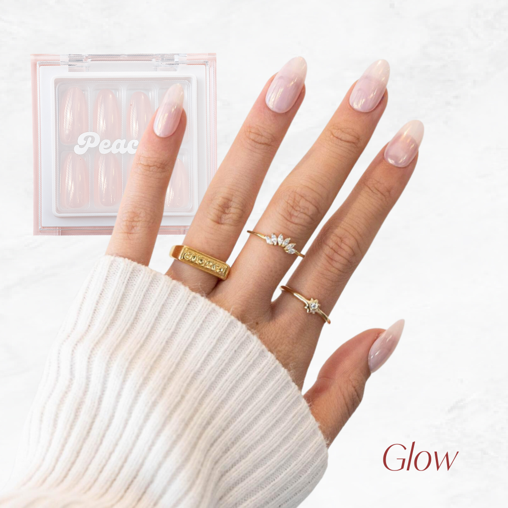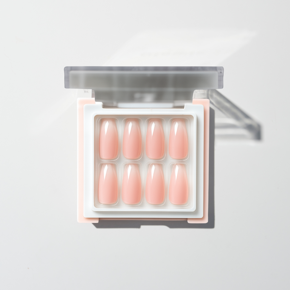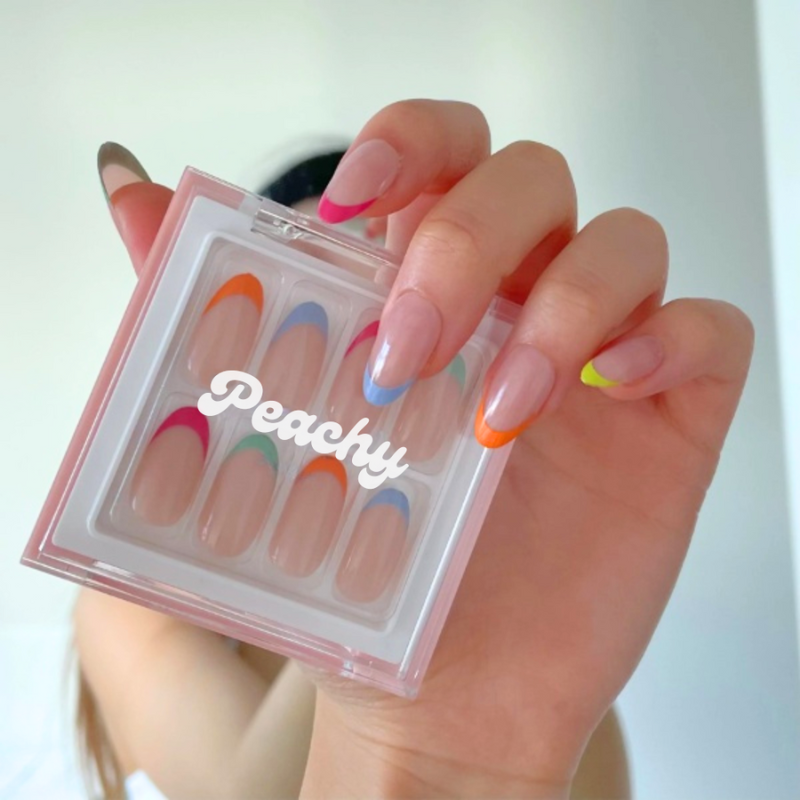 Aplica el pegamento Peachy después de elegir el tamaño ideal para tu uña natural. No te preocupes por la talla: cada set incluye 28 uñas con todas las medidas necesarias.