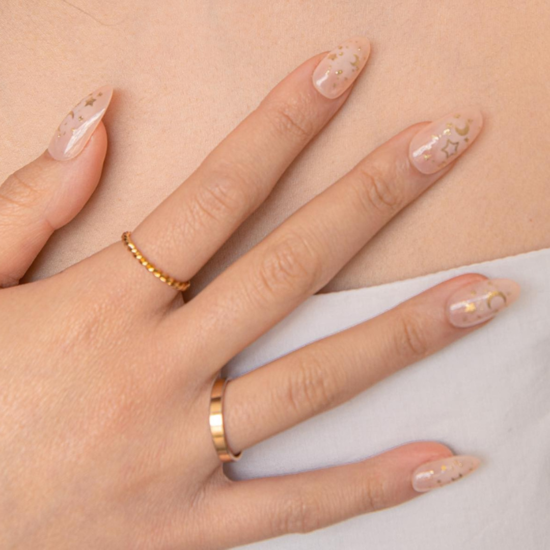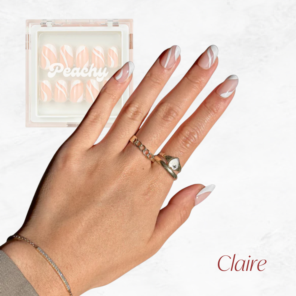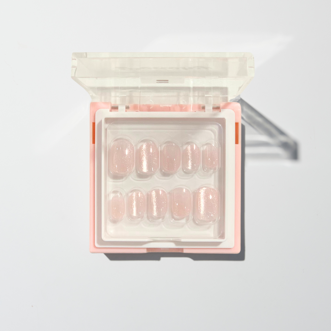 Aplica el pegamento Peachy después de elegir el tamaño ideal para tu uña natural. No te preocupes por la talla: cada set incluye 28 uñas con todas las medidas necesarias.